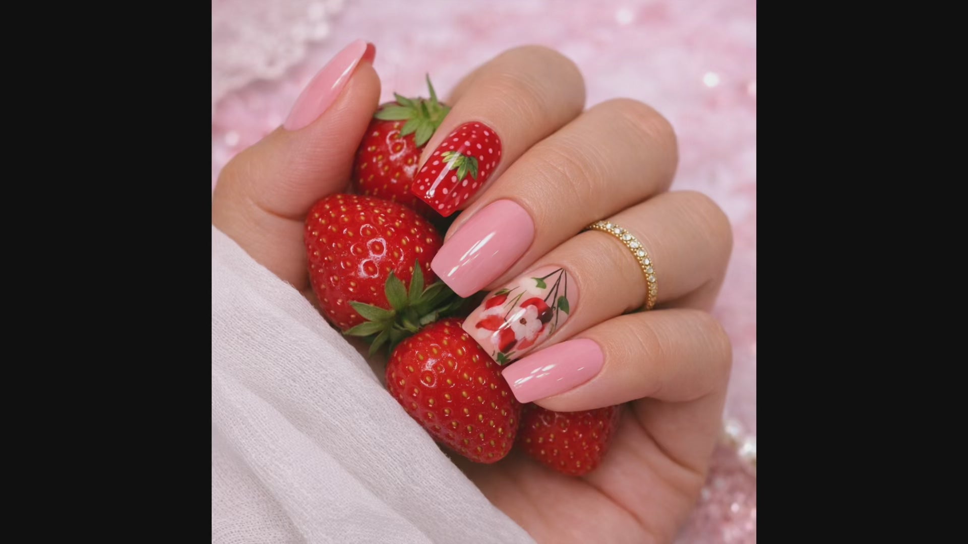 Strawberry Milkcore Press On Glue On Nails! Glossy and gorgeous! I mean, who doesn't LOVE this trend!