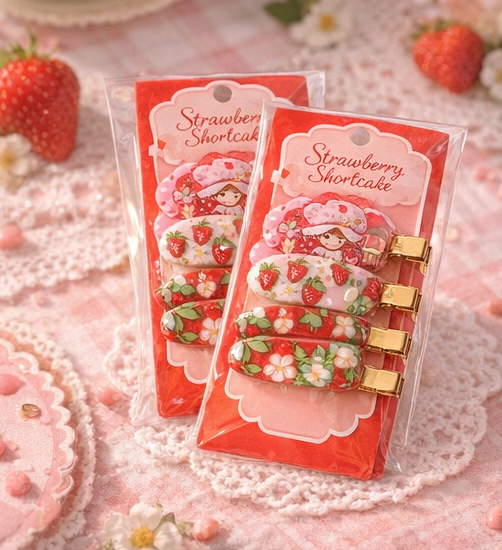 These Strawberry Shortcake–inspired hair clips are here to keep your bangs in line and your aesthetic on point. With sweet strawberry prints, floral vibes, and shiny gold clips, this set is basically nostalgia… but make it chaotic-cute. Each package comes in a set of 6 with 2 of each style clip.